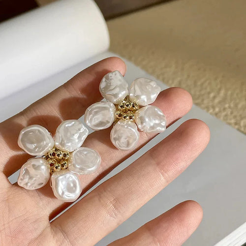 (2x1) Pendientes Flor de Nácar - Baño oro
